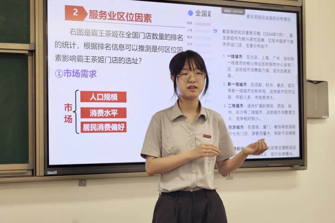 “地理不只是课本里的知识,更是生活里的呼吸。”胡蝶表示。从一杯奶茶的选址逻辑到五金商贸城的兴衰变迁,这堂地理课以生活为经、以技术为纬,编织出一幅服务业区位的立体图景。当知识走出课本、走进生活,地理的魅力便在学生的眼中悄然绽放。