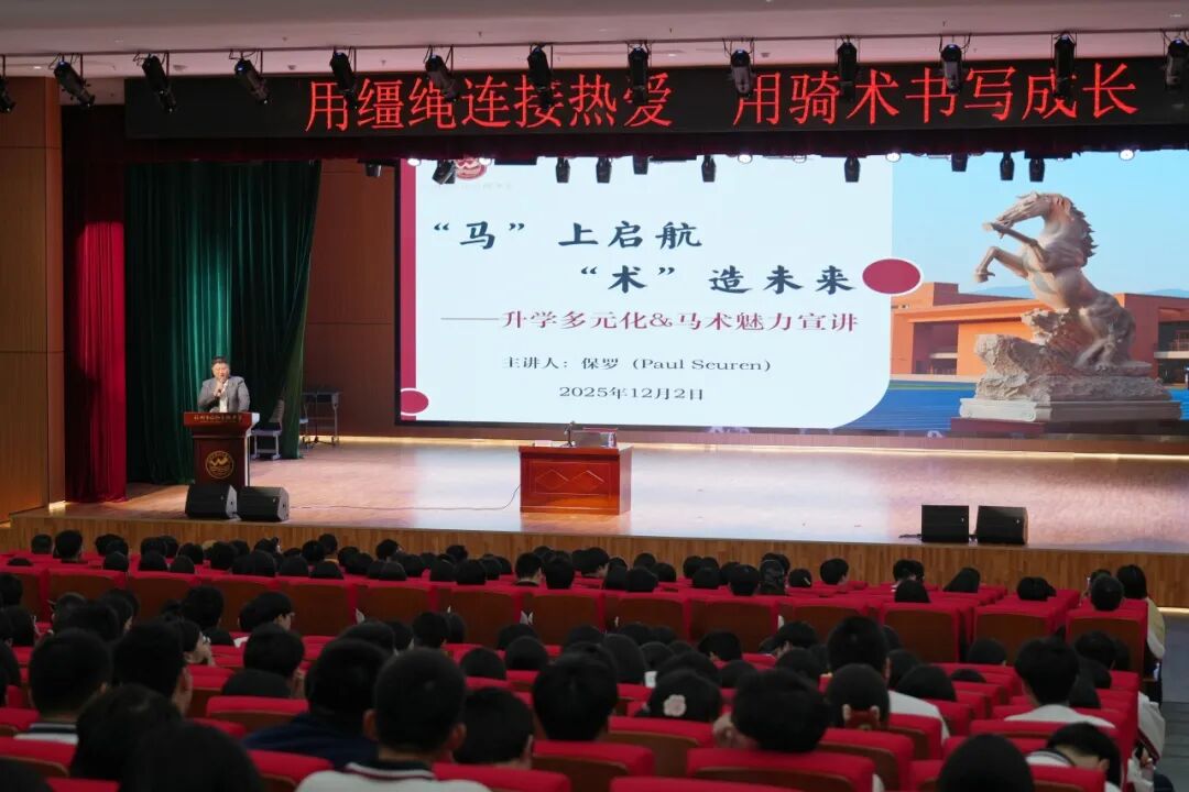 12月2日,福外高级中学联合福建省马术协会成功举办了马术科普讲座。本次讲座特邀澳洲小马俱乐部协会认证考官兼培训导师保罗(Paul Seuren)与福州外语外贸学院王敏博士担任主讲嘉宾,揭开了马术运动的神秘面纱,以专业视角解码马术运动与个人发展的深度关联。