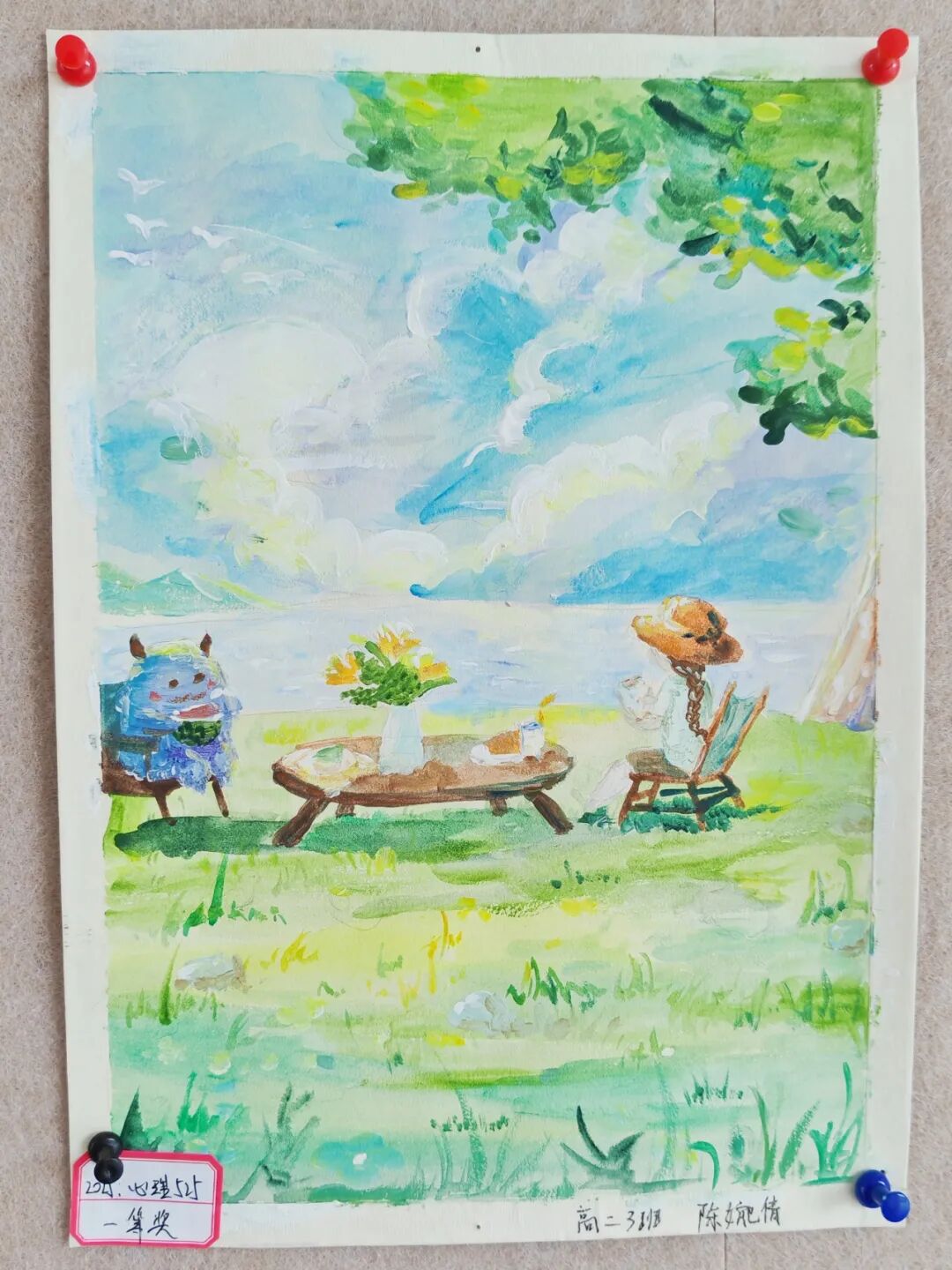 同学们展现了极高的参与热情,调色盘上跳跃着缤纷的色彩,画笔在洁白的画布上流畅游走,勾勒着内心的图景。有的同学细致描绘着象征平静与希望的蓝绿色调,有的则用大胆的笔触表达着澎湃的活力与自信,还有的精心构图,用象征符号诉说着关于自我接纳、勇气或人际温暖的感悟。经过激烈的评选,最终产生以下获奖名单。
