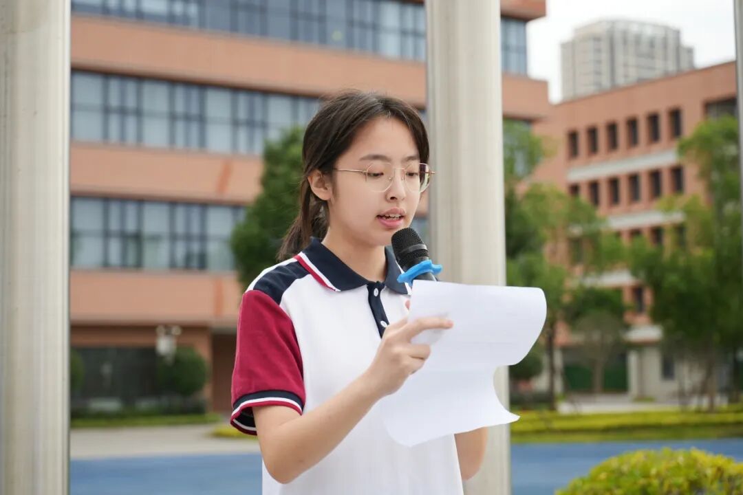 王晨苏同学以“拒绝校园欺凌,共建阳光校园”为题发言。她告诫同学们,任何欺凌都是对尊严的践踏和校园的玷污,呼吁大家不做冷漠旁观者,并建议受困同学勇敢求助。同时她呼吁多数同学成为守护者,用行动照亮他人,同时提倡提升内在修养,以尊重、包容和勇敢共同守护校园,让青春在阳光下安然绽放。