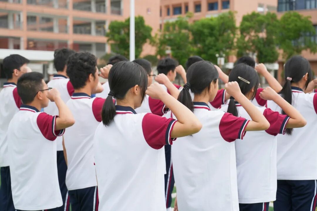 高一(1)班的的同学们代表全体福外高中学子,在国旗下庄重宣誓:“坚决拒绝校园欺凌,不做施暴者,用理性代替冲动,用友善化解矛盾;不做冷漠旁观者,见欺凌敢发声,遇弱者伸援手;用心守护同学情谊,用行动维护校园秩序!”