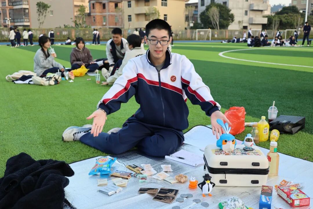 这一天,老师们放下教案,和同学们一起逛市集、挑好物,在闲聊中倾听青春心事;同学们也卸下了拘谨,主动和老师分享零食、组队游戏,在轻松的氛围中拉近了心的距离。同窗之间更是默契十足,一起布置摊位、分工协作,一起围坐野餐、畅谈理想。没有内卷的焦虑,只有真诚的交流与温暖的陪伴,让师生情、同窗情在这场活动中愈发深厚绵长。