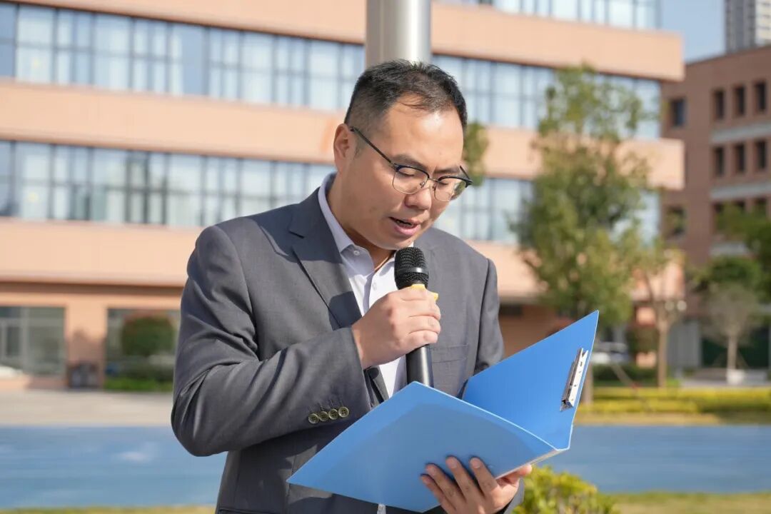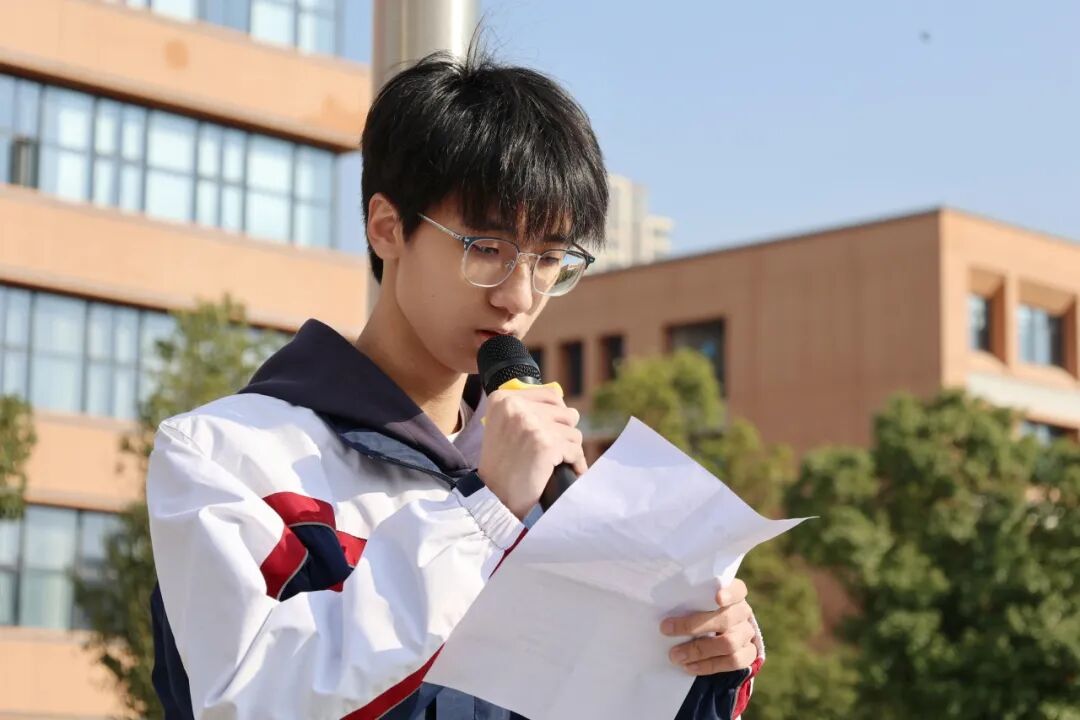 蔡定隆同学作国旗下讲话。他深情回望了中华民族从山河破碎到伟大复兴的艰辛历程,深切缅怀了为守护家国、换取今日安宁而牺牲的先烈。他表示,作为新时代青少年,“担当”体现在生活的点滴中,每一次认真的学习、每一刻对原则的坚守,都是在为祖国的发展进程注入青春的能量。他呼吁同学们从民族的历史中汲取力量,勇担时代重任,号召大家用青春与奋斗开创祖国更加繁荣昌盛的未来。